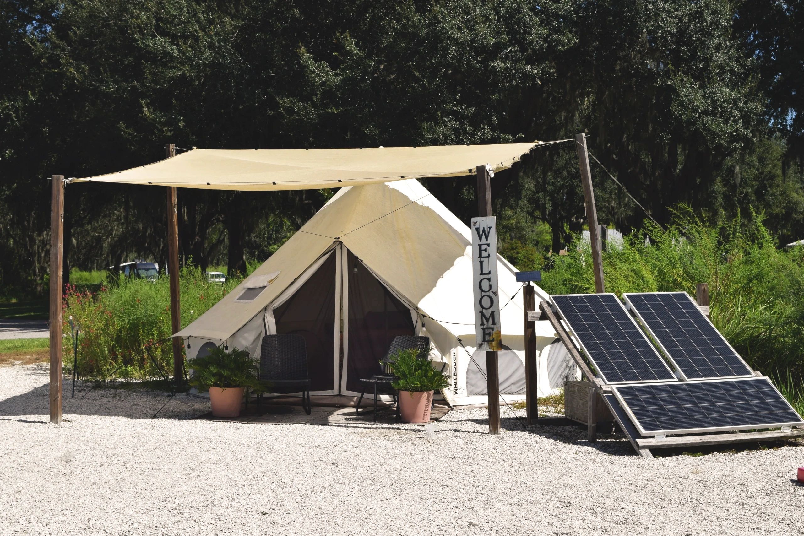Comfy Camping offers furnished luxury canvas bell tent rentals in Alafia River State Park for an ultimate glamping experience.